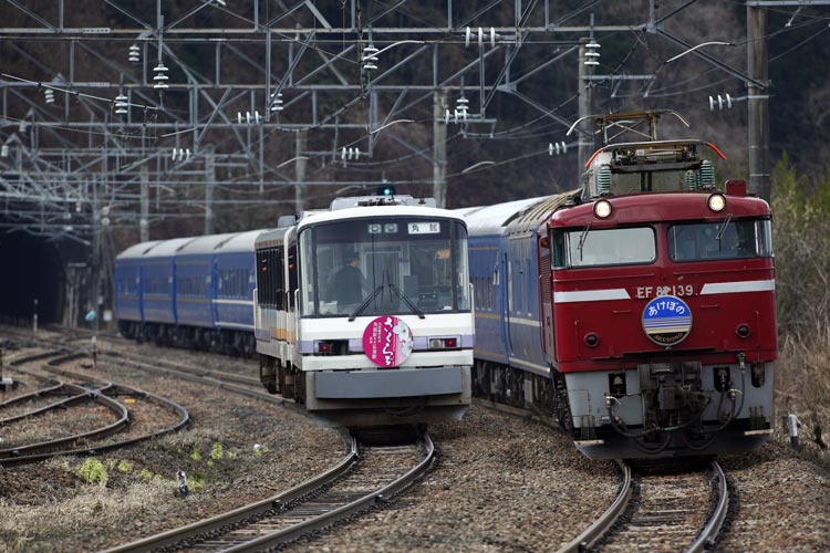 今日は「あけぼの」と「さくら号」の離合が叶わなかったので、合成で遊んでみました。
