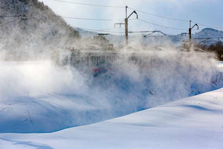忍者の雲隠れよろしく雪隠れ。なかなかの雰囲気で通過していきました。