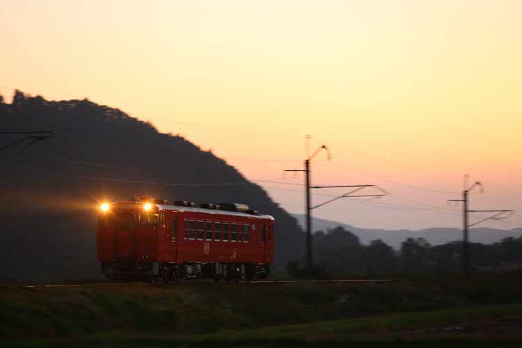 良い感じに斜陽も差し込み、そこへやって来た露払いの普電。