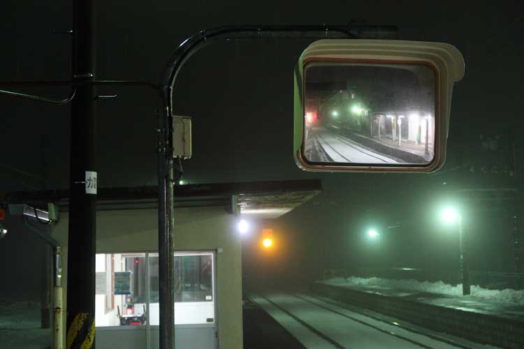 貨物と特急は降りしきる濡れ雪でしたが、デーテン通過時はスッキリ。