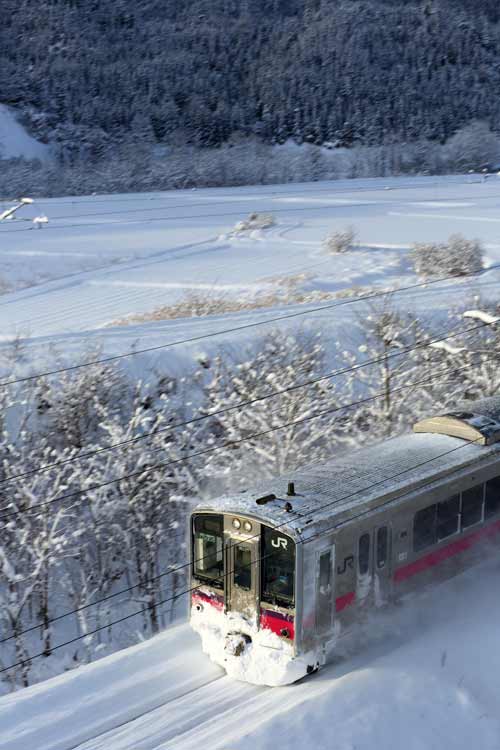 昨日は一日中綺麗な青空でしたが、今日は下り列車が完全ストップの大荒れ。