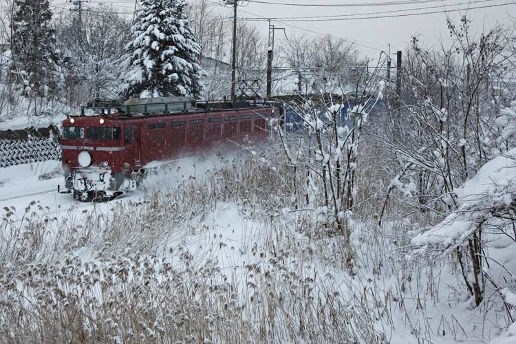 雪を蹴散らし突き進むトワ釜。白銀の中では結構好きです。