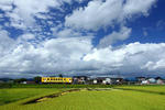 朝の列車は台風の影響で遅れていたものの、台風一過の青空。