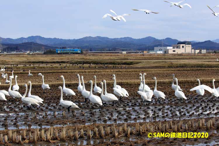 お久しぶりです 白鳥とローカル線、のどかな中にも元気を感じる光景ですね‼ シャッターチャンス素晴らしい‼