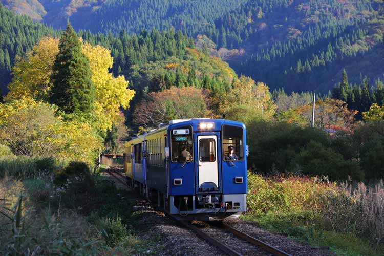 秋田内陸部の紅葉は真っ盛り。列車も満員状態で車両増設。