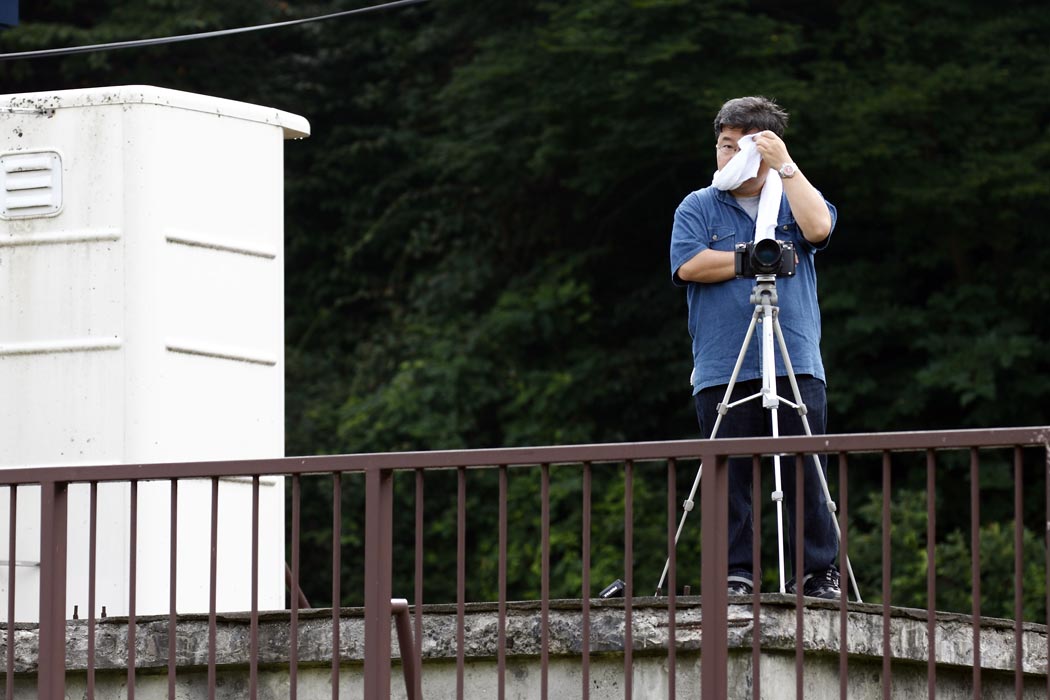 最初はお立ち台と思いましたが、接近戦に備え橋桁へ。