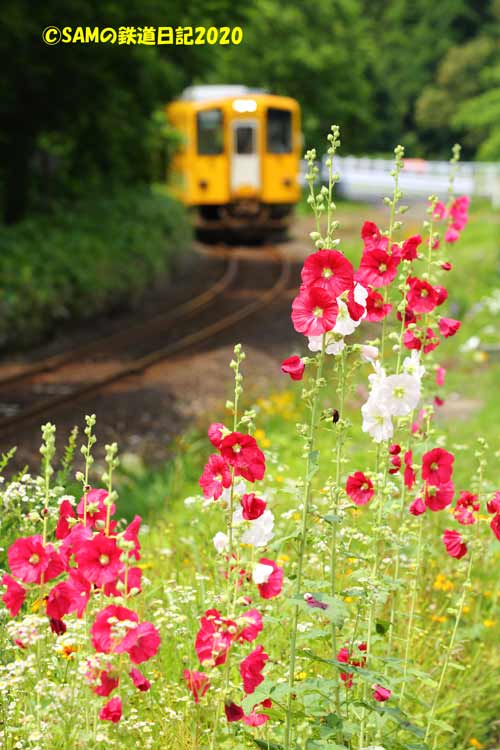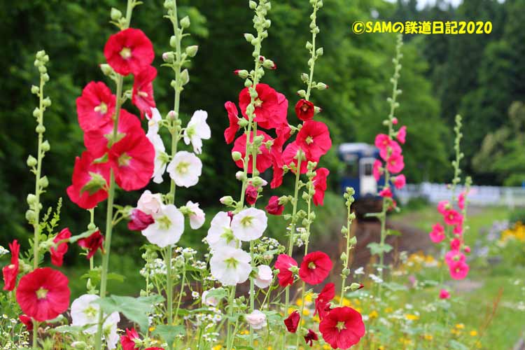 明日も雨予報ですが、秋田内陸線沿線の紫陽花と立葵はまだ。