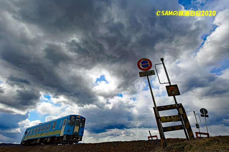 遠くの山並みは見えないので、いつもの踏切での撮影。