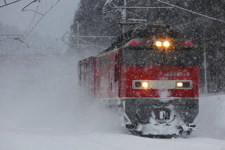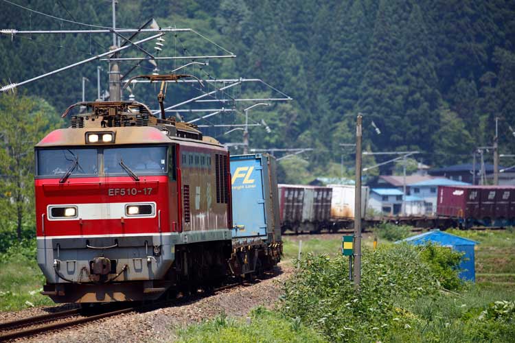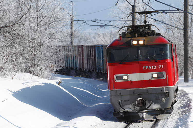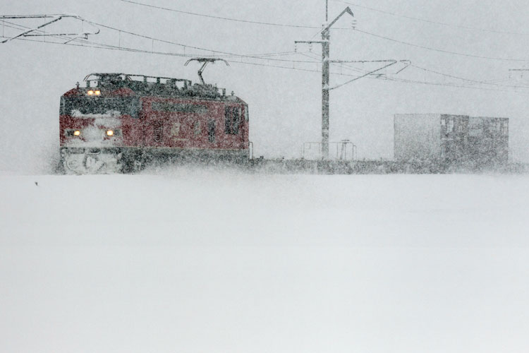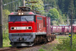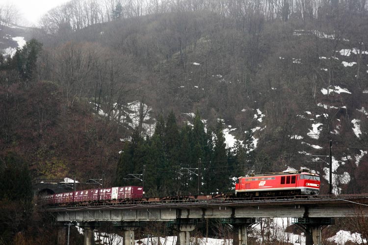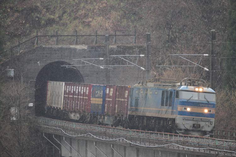 上下とも何の貨物か分かりませんが、赤雷様が駆け抜けました。