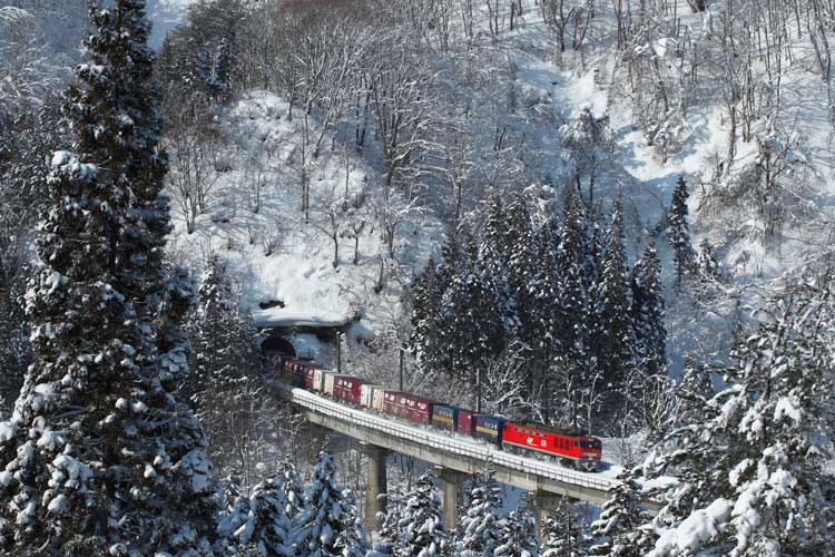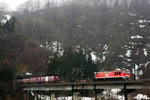 やっぱ、冬景色には赤い機関車がとても映えます。