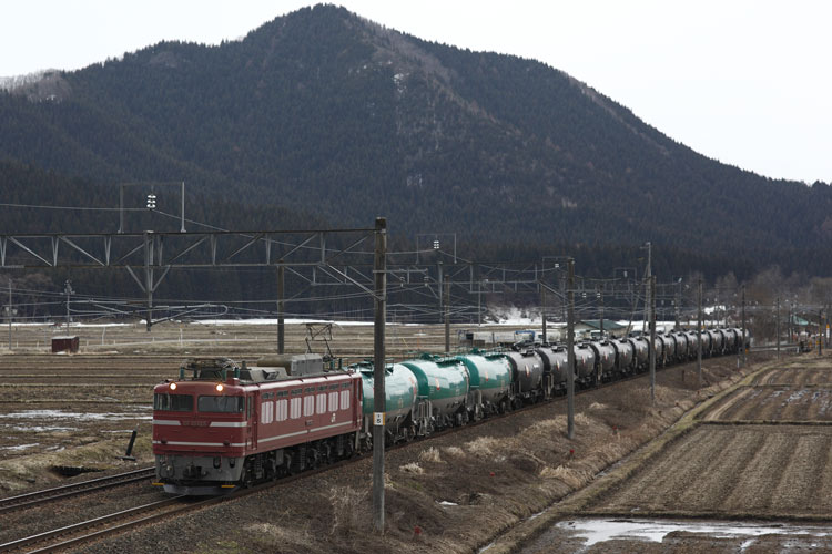 タキ回送、つがる離合(もち失敗)をゲットして、本命の上り大館貨物捕獲へ。