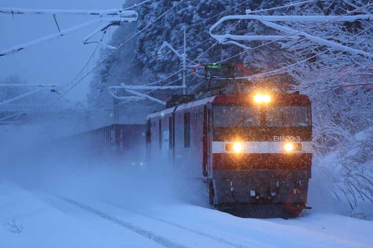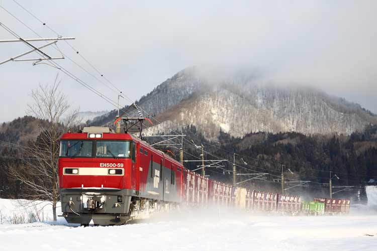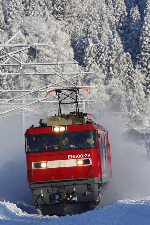 雪煙を上げて走る貨物列車は、やっぱ格好良いですね~~!