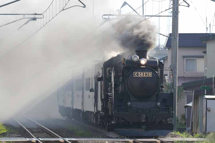 平坦区間でモロ逆光ではありますが、そこは蒸気。