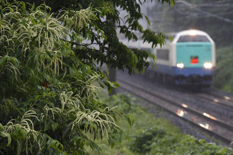 満開の栗の花と雨。なかなか良い感じに濡れそぼっていました。