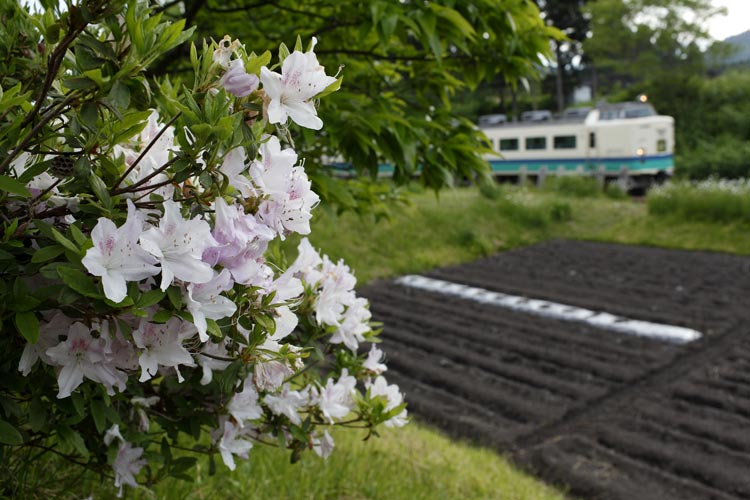 散り始めたツツジとパチリ。1656貨物はマーガレットとパチリ。