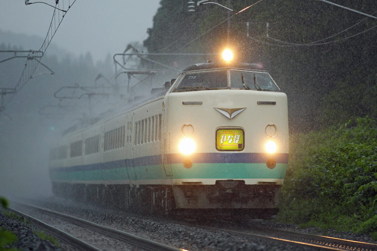 かろうじて「いなほ8号」通過時に雨が降り出し、少しイメージに近づいた感じ。