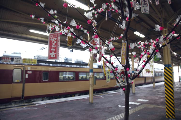 ところが、せっかくの大館の冬の風物詩「アメッコ市」なのに、駅に置いてあるアメの木は一本だけ。