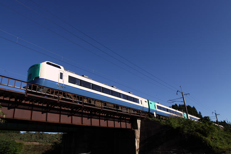 今日の「いなほ8号」は、はくたか仕様だったので、サイドからの流しに挑戦。