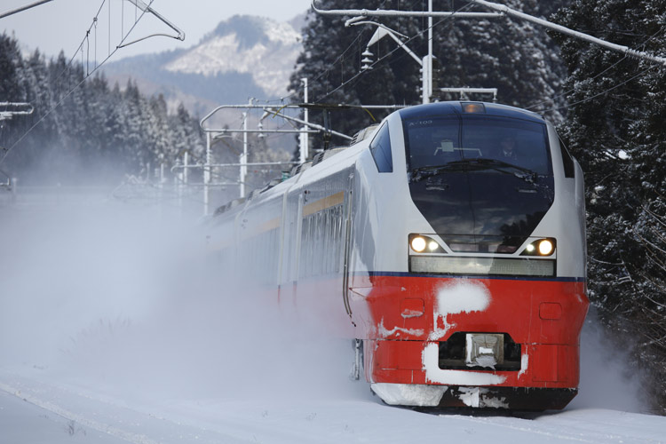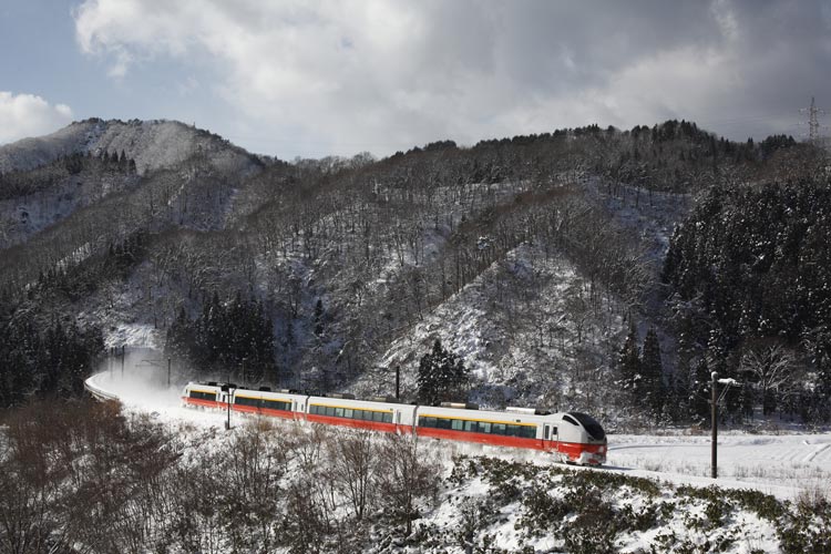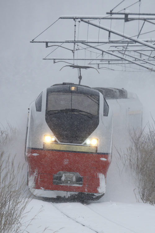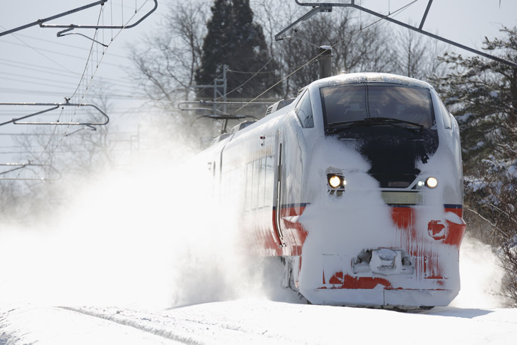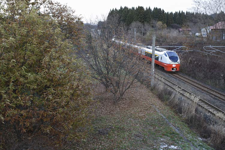 雪掻きが終わり朝食も済ませ、つがる3号を狙いにお立ち台へ。