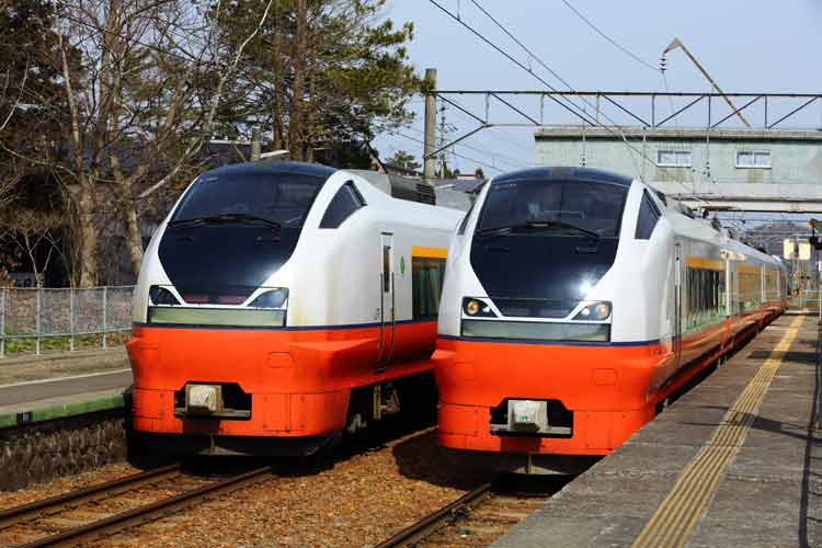 ダイヤ改正後、下川沿駅で交換するようになった「つがる」3号、4号。