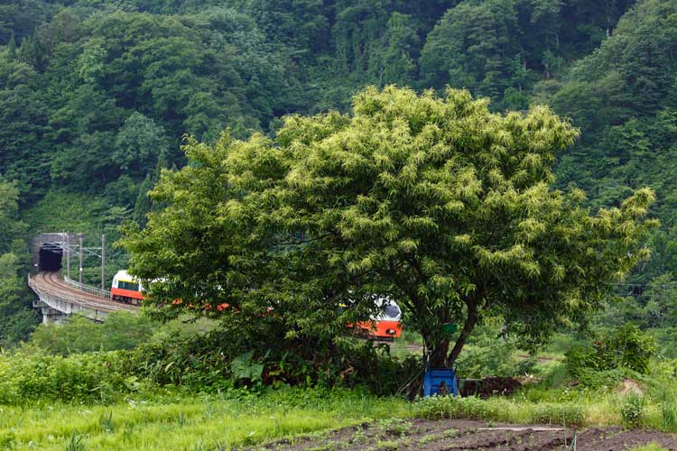 下りをどこで撮るか沿線を流して、よさげな栗の木を発見。