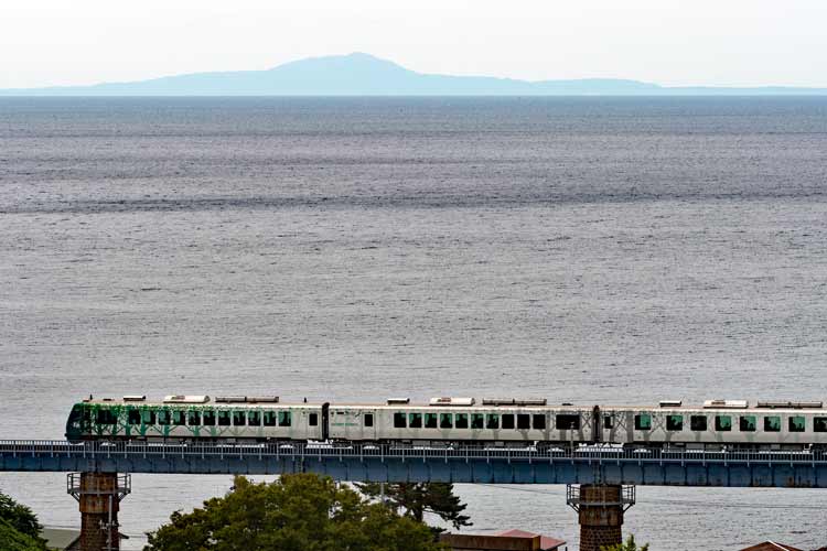 ホテルの部屋からは、日本海を背に五能線が見えました。