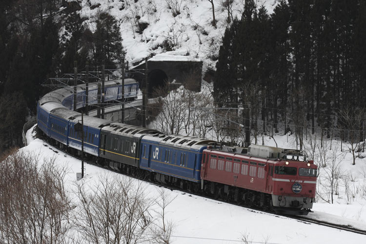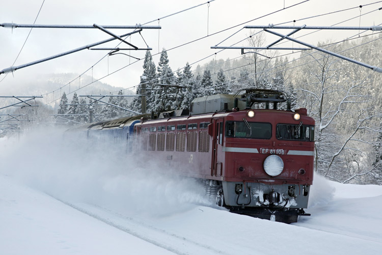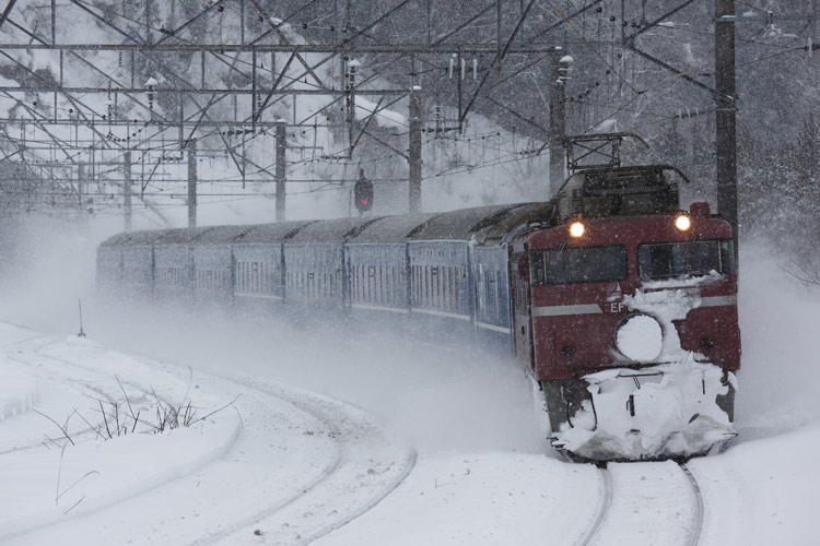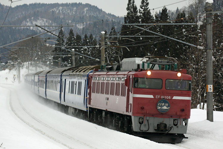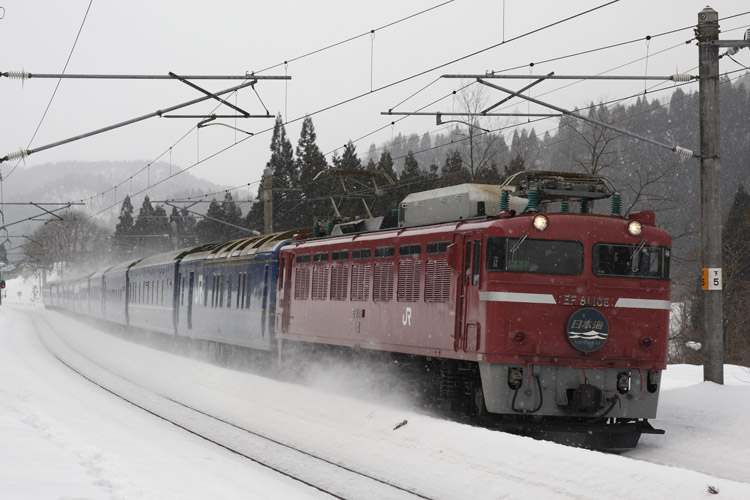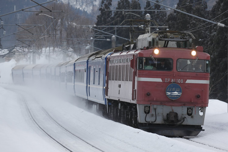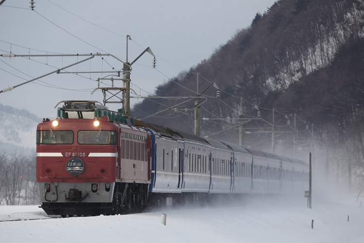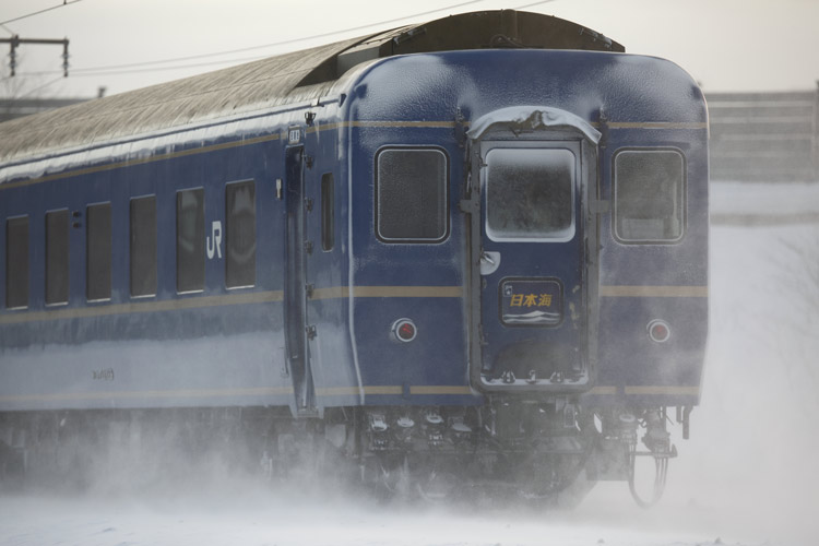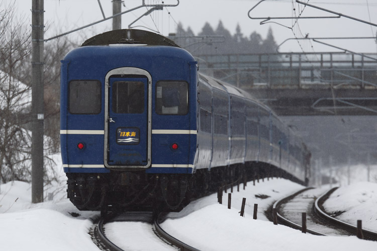 「あけぼの」は雪煙で編成が隠れましたが、「日本海」は11連バッチリ。