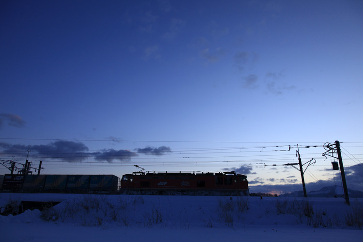 その帰り道、ちょうど貨物の時間があったので、斜光ギラリンを狙いに沼館へ。